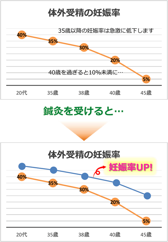 全日本鍼灸学会の発表では、不妊症の女性に対する鍼灸治療が、妊娠率を飛躍的に向上させる