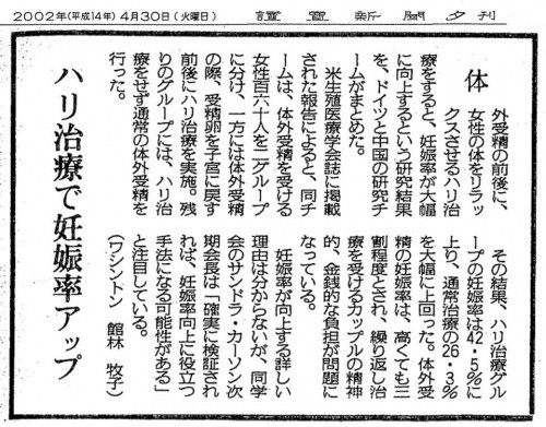 共同研究:竹内病院トヨタ不妊センター(現 俵IVFクリニック院長)俵史子先生、 明治国際医療大学臨床鍼灸医学Ⅱ北小路博司先生、明治国際医療大学臨床鍼灸医学Ⅱ(現 明治東洋医学院専門学校)本城久司先生